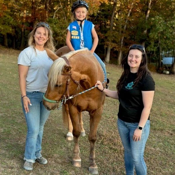 Join us for 2 hours of horse-filled adventures. Troops get to experience a typical day of owning horses including the fun of riding them. We go over safety, good horsemanship practices, the basics of starting to ride, horse-care requirements (feeding, grooming, care) and different aspects of owning and caring for your very own horse. Troops are typically divided into 2 groups. Everyone gets to jump in and help groom/tack up/untack horses. Once groups are split one will ride while the other does some routine farm chores (seeing how you clean stalls, check fence, clean buckets etc.) and then they trade so both groups get equal time to ride. Each group will also do a horse-related craft while they are with us.
